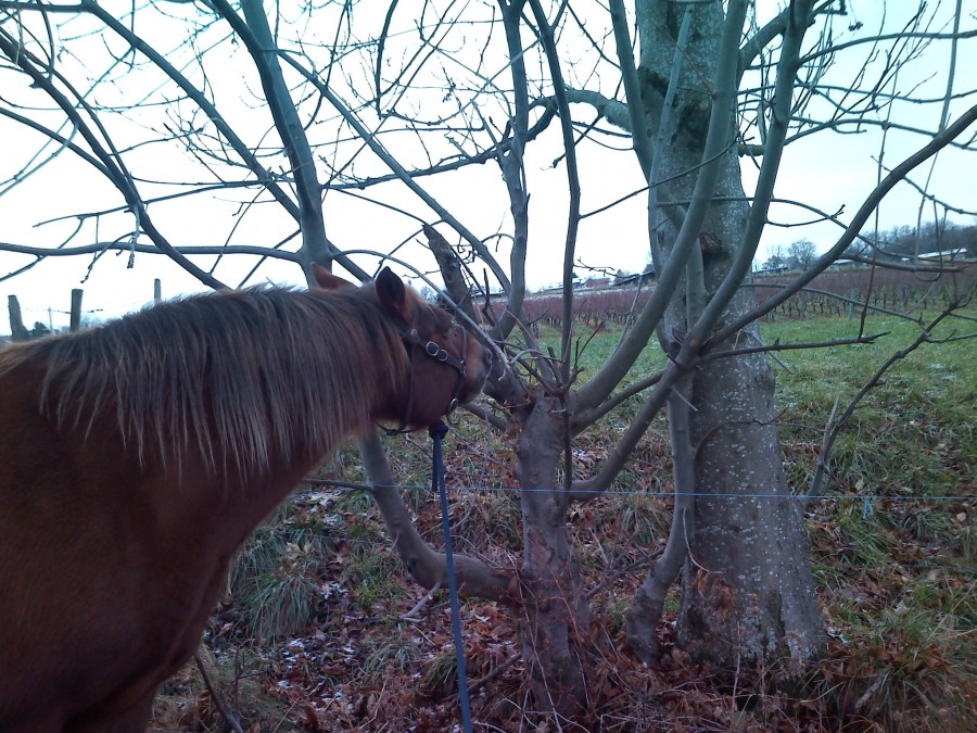 Tant avant en fin de balade elle n'attendait qu'un chose , que je lui retire du bridon licol quand je mets pieds à terre pour terminer à pied, tant ici elle ne manifeste pas cette impatience.