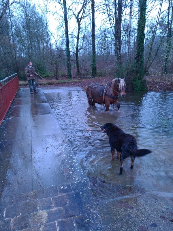 Du coup on a fait nos premiers kms : 4kms en sortant du travail ! Je me suis arrêter discuter un peu avec des "voisins" (qui sont à environ 2kms) puis on est rentré d'un bon pas car la nuit arrivait,... Que du pas car gadouille gadouille ... et c'est pas fini, ils annoncent de nouveau de la pluie à partir de demain soir et pour le week-end On va finir par faire des balades aquatique si ça continue XD