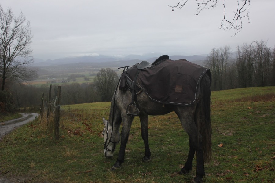 On avait songé à le mettre en petit paddock et abri tunnel, au pire de la boiterie quand on ne savait pas encore ce que c'était, mais j'ai préféré le laisser dans ses habitudes. Du coup, je l'ai couvert. C'était le mieux !