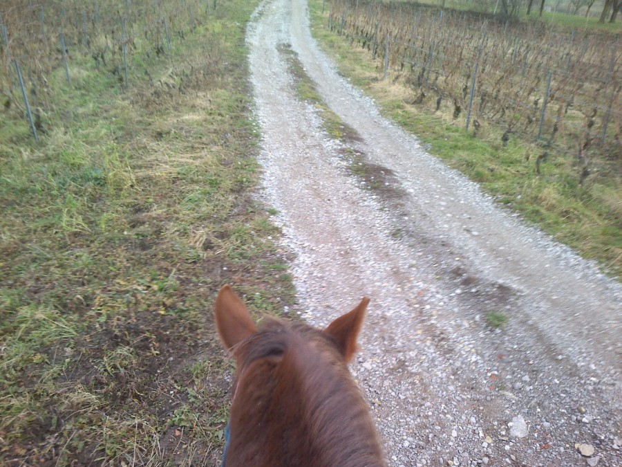 Jument tip top, contente de sortir, un pas du tonnerre !! Le copain cheval tirait la tronche car obligé de trotter pour rattraper...
