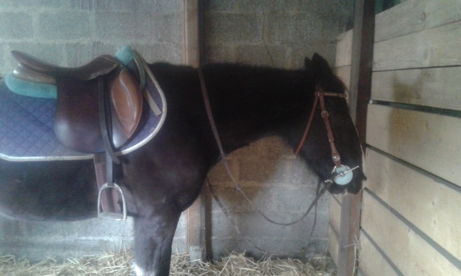 ici un peu moins de 2h de balade tranquille dans la plaine, la jument elle va bien mais moi j'ai mal au dos !