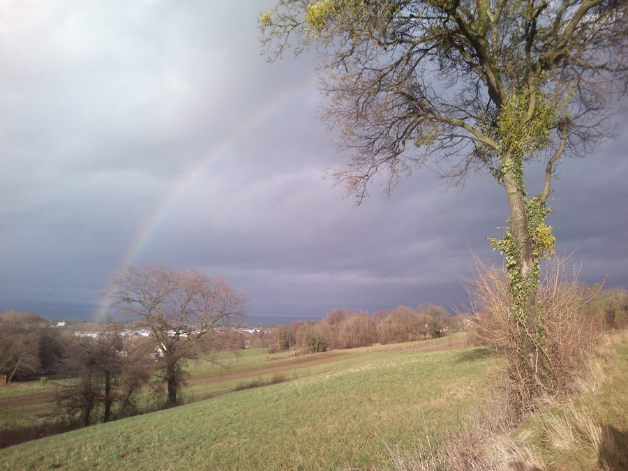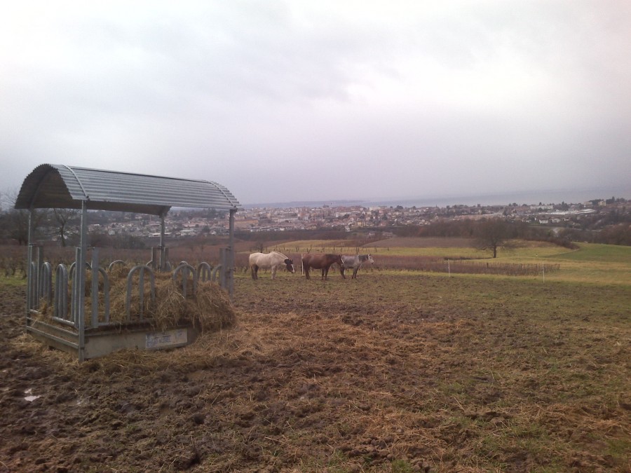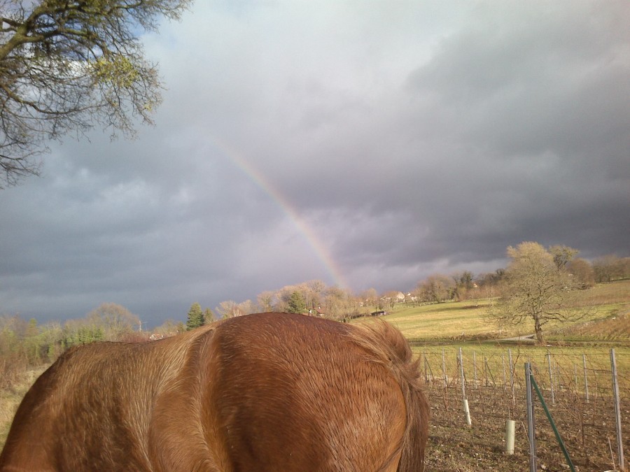 alors elle est venue puis a fourré son nez dans le licol ;puis on est partie face au vent d'abord (pour l'avoir dans le dos ensuite Puis un petit rayon de soleil est apparu entre les averses