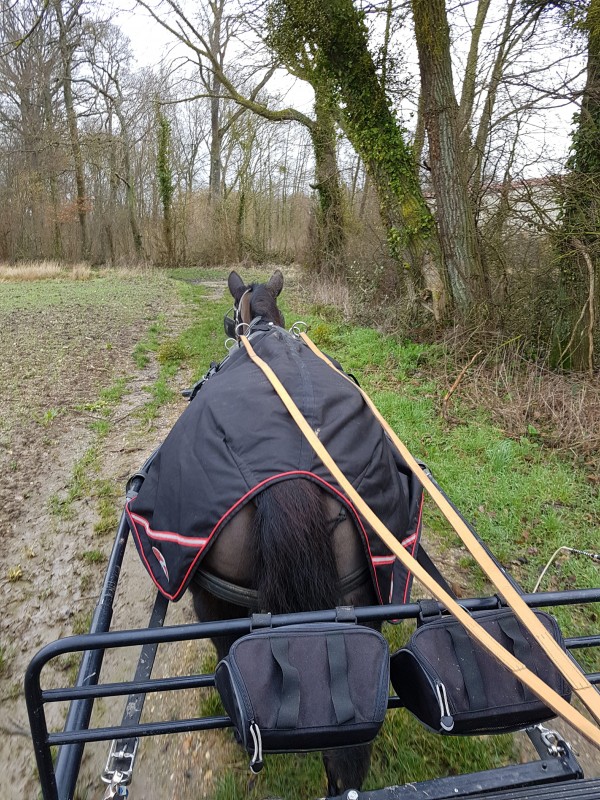 Voici les photos de la balade attelée avec pilou65 du 28 janvier, bon le bandage n'a pas tenu donc je l'envoie en réparation et la récupére que fin mars, en attendant on sort monté...