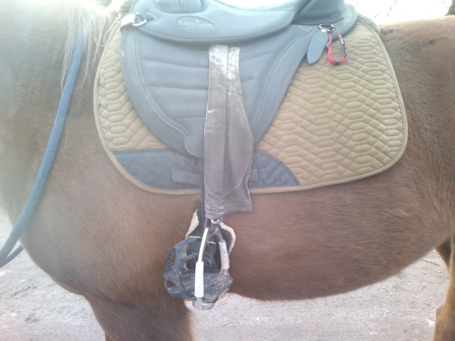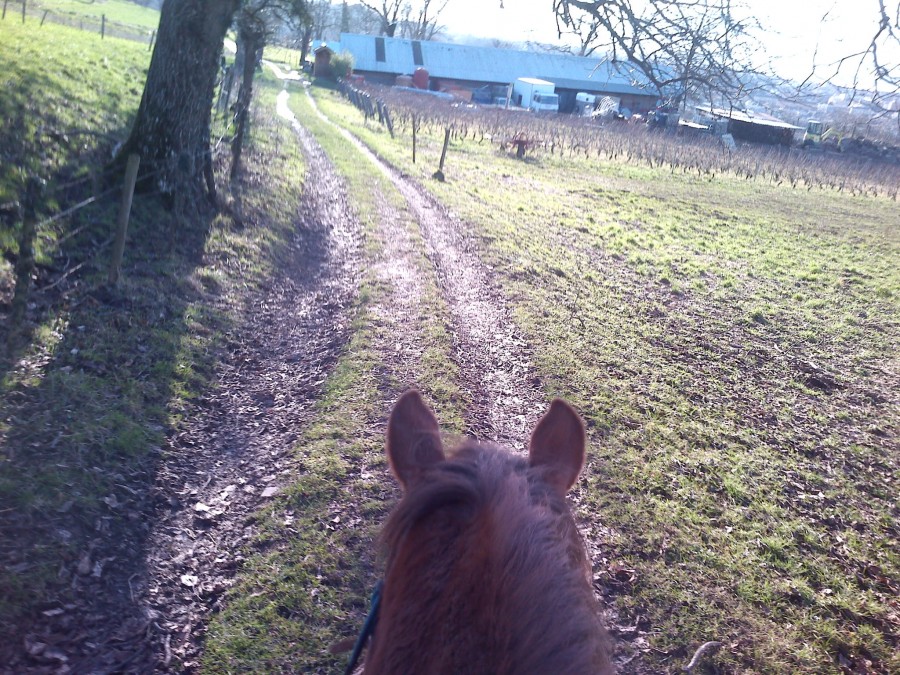 Puis on a fait le tour des vignes avec les 4 boots au pas puis un mini trot ....Elle avait des moments d'inquietude ,mais on a bien géré .... Puis j'ai rallongé d'un trou mes etriers et c'etait mieux (j'ai du refaire un petit tour pour voir )