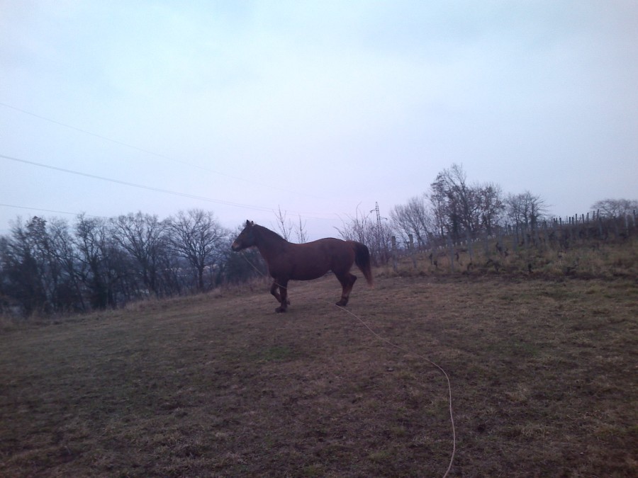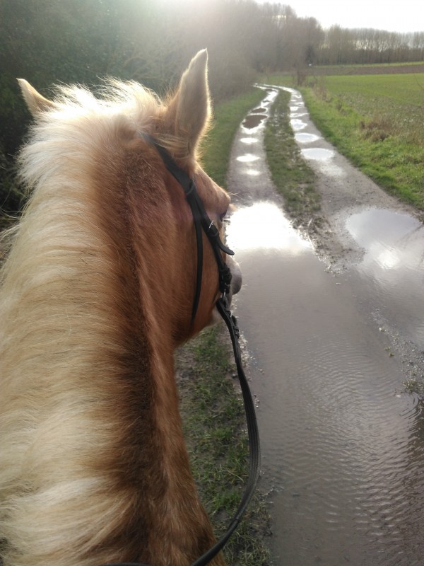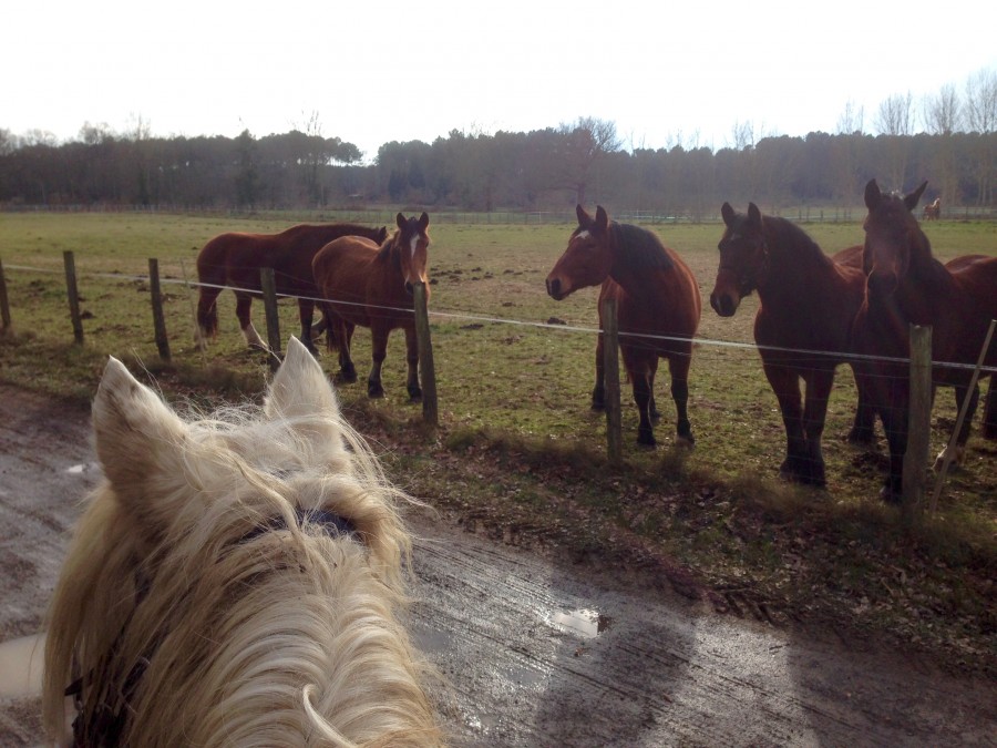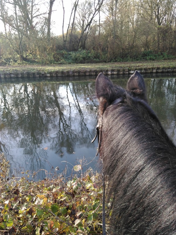 Ca se voit qu'il a perdu l'habitude de balader tout seul il a fait qu'hennir ça en était chiant! Le dernier km j'ai marché car il avait eu bien chaud avec son gros poil malgré qu'on ait fait principalement du pas à cause des chemins détrempés :/