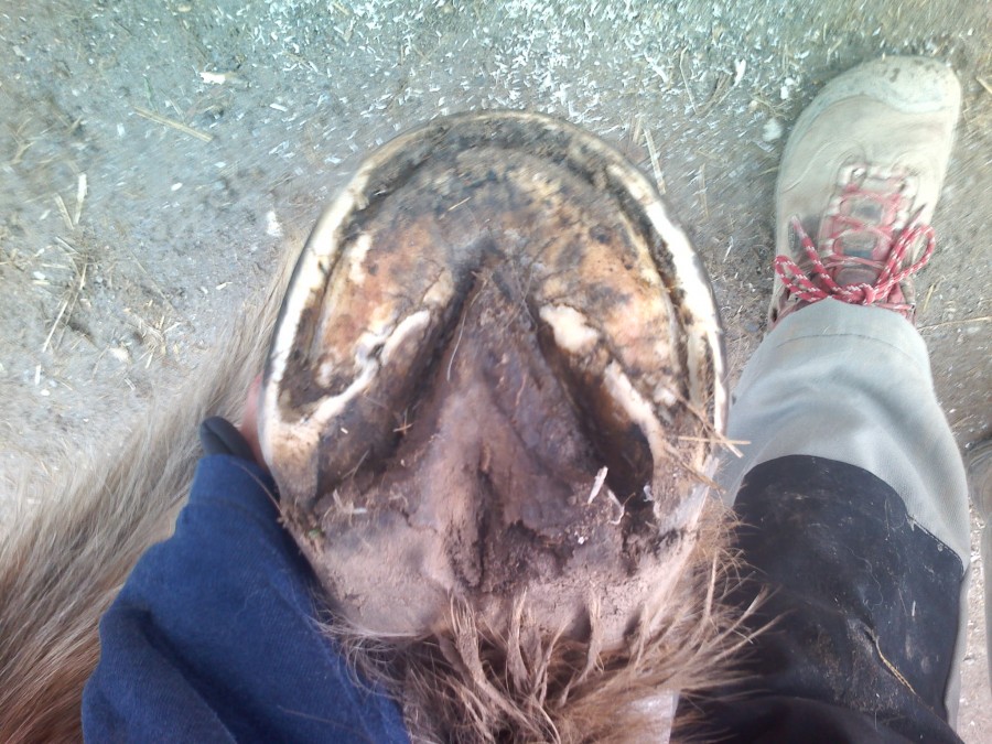 Mais ça change toujours un peu ,puis là comme elle est au box la nuit ;la corne "souffre un peu" et les fourchettes car même dans le paddock il commence a y avoir pas mal de crottins