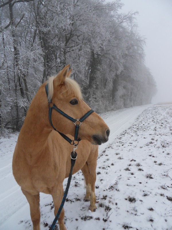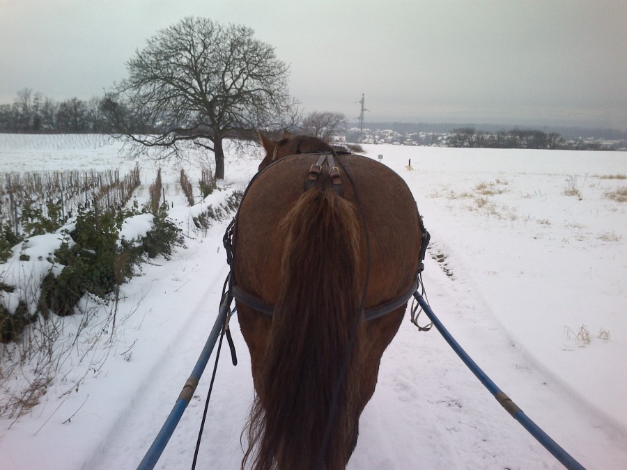 le plus dur c'etait la fin où il n'y avait plus de neige car ils ont déneigé et que Mia est partie à gauche mais moi je ne pouvais pas car il y avait des pierres (bon j'etais en traîn de dire que c'etait bien passé à la proprietaire de la trotteuse alors pas (assez) concentré sur la jument