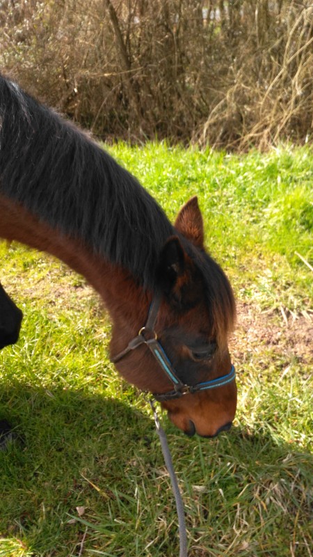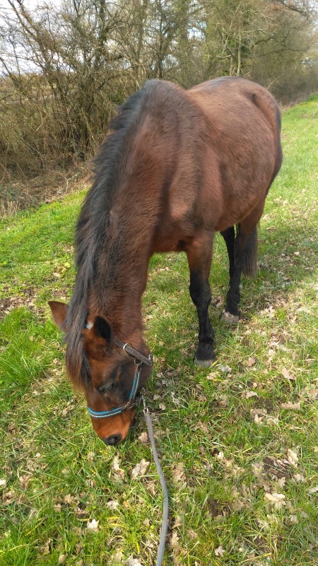 Pour ma part, cheval convalescent mais j'ai tenté de le marcher un peu en main. On a fait trois kilomètres et tout s'est bien passé, pas de boiterie, la gonfle au jarret n'a pas bougé...