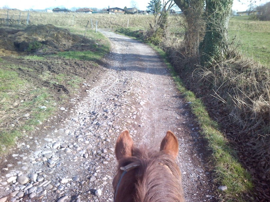 Loulou beaucoup plus serein, j'étais avec une copine et il passait de lui même devant (la dernière fois il bloquait), on a même tenté de trotter en restant en tête et parfait ! On a un peu galopé (premier galop dehors !!), mis à part les mottes de terre dans la tronche rien à redire non plus La prochaine on tentera de galoper devant, et je vais motiver les copines pour aller explorer un peu, elles ont 3/4 chemins de ballades mais ils sont relativement courts et l'idée de suivre toujours le même chemin m'ennuie un peu, j'aime trop crapahuter et explorer, me perdre et découvrir de nouveaux sentiers ...