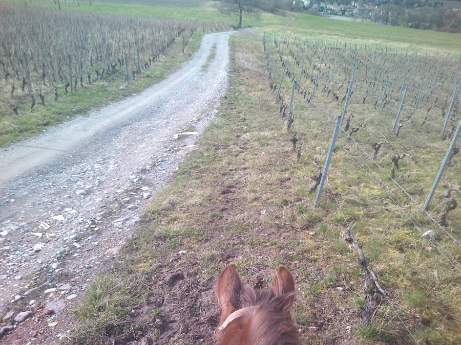 3.8 km monté avec un peu de trot et beaucoup de vent ; Mia est quand même moins cool qu'en LR mais bon va falloir s'habituer .....Puis moi aussi je n'ai pas encore tout a fait trouver ma place au trot ...