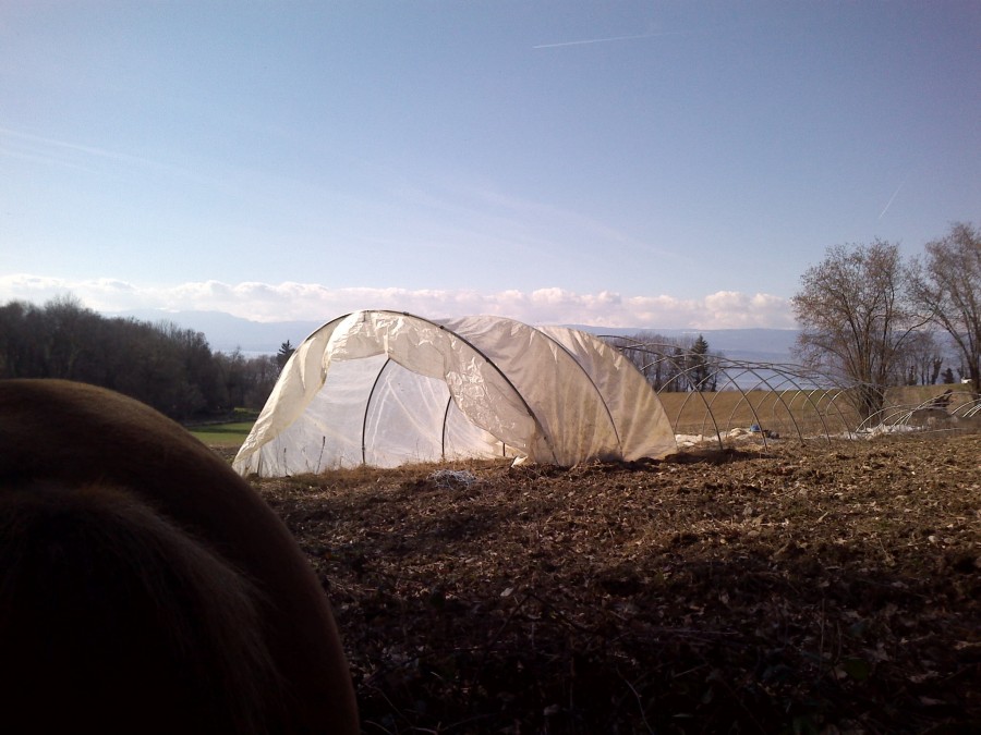 Puis là , c'est la serre qui se gonflait "dangereusement " en debut de semaine ;mais je ne pouvait pas le prendre en photo à ce moment ...