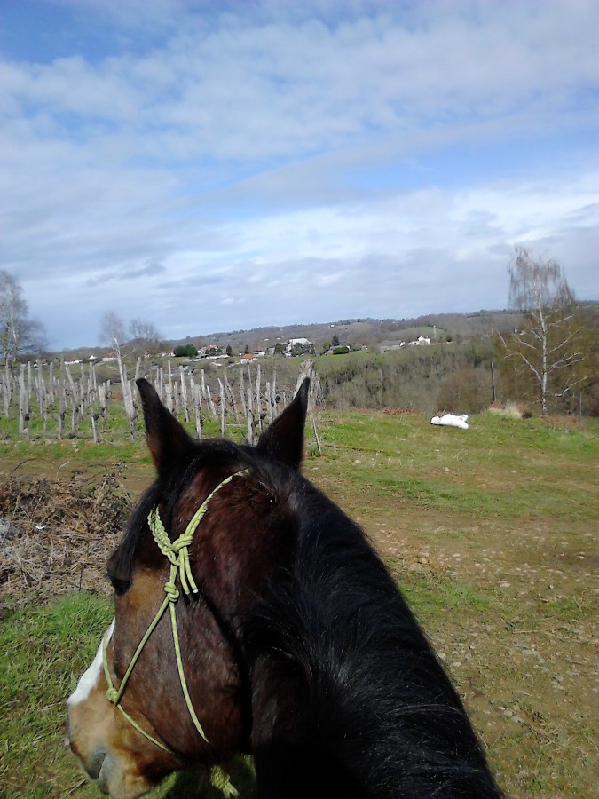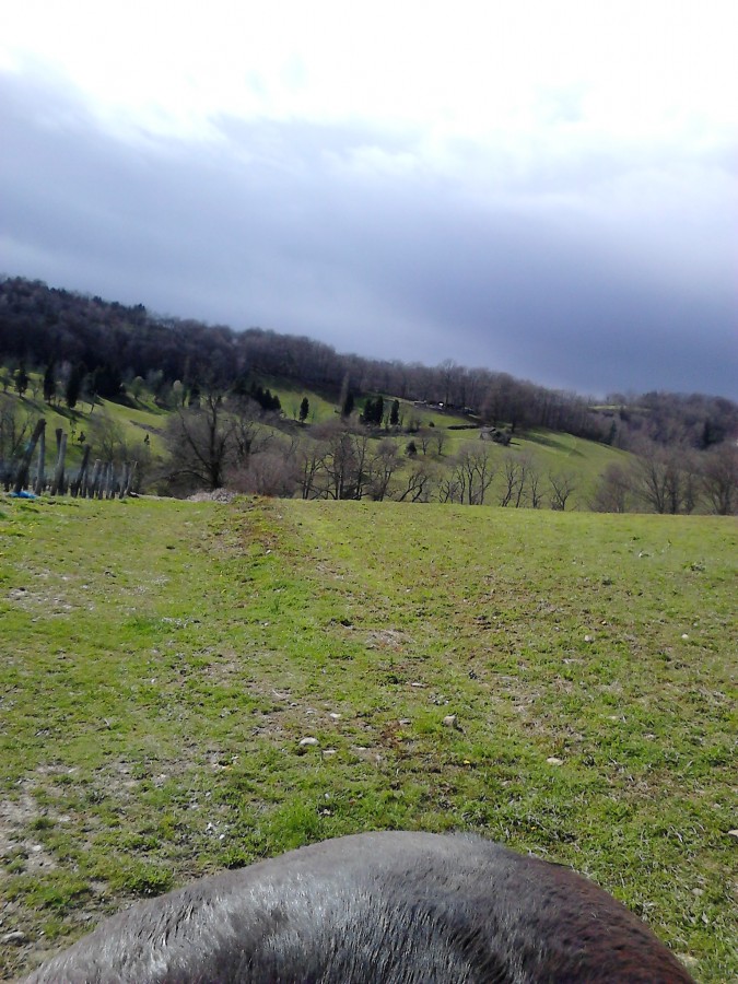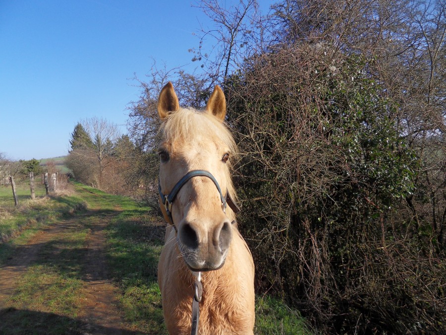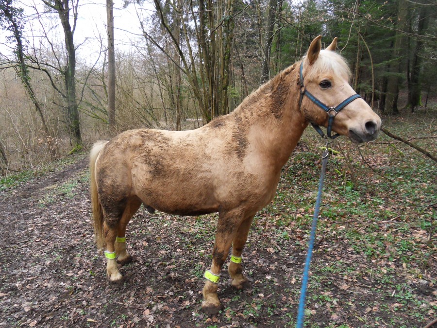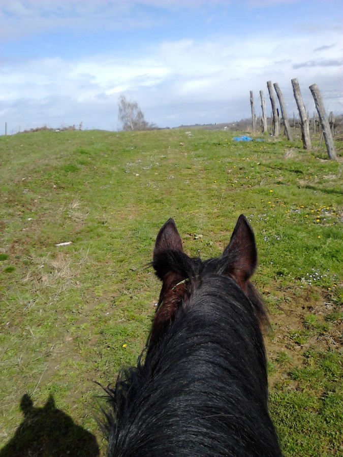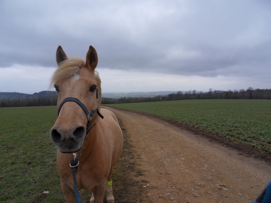 Poney impeccable. Je trouve qu'il a une meilleure amplitude même s'il n'est pas rapide, il se mobilise mieux. Terrains dégueulasses, on a essayé de trotter et galoper mais bof.
