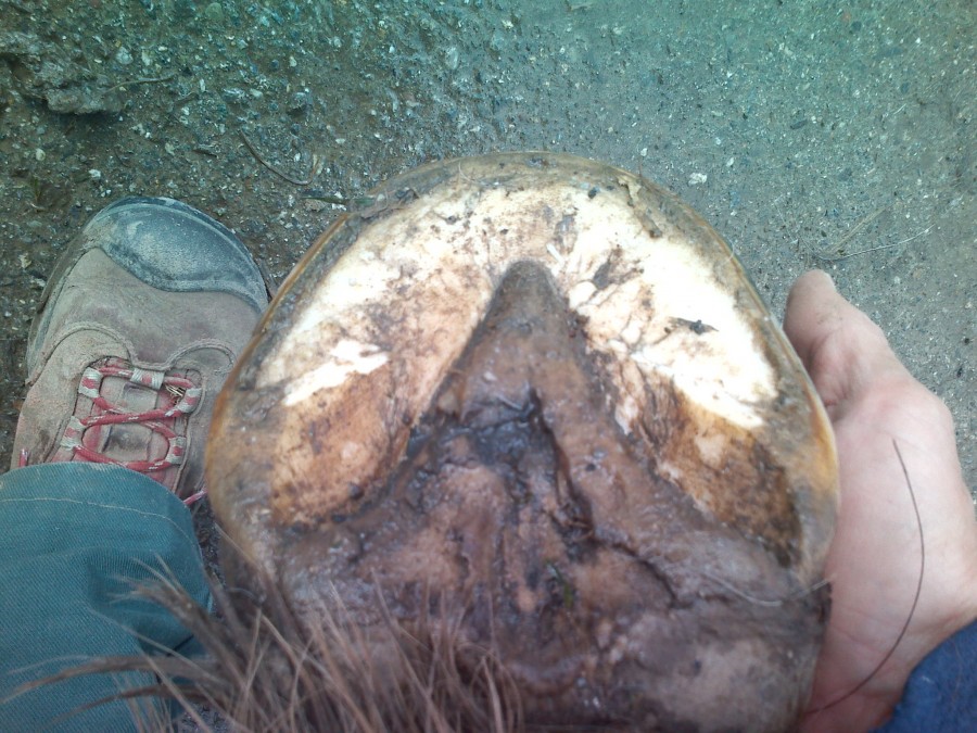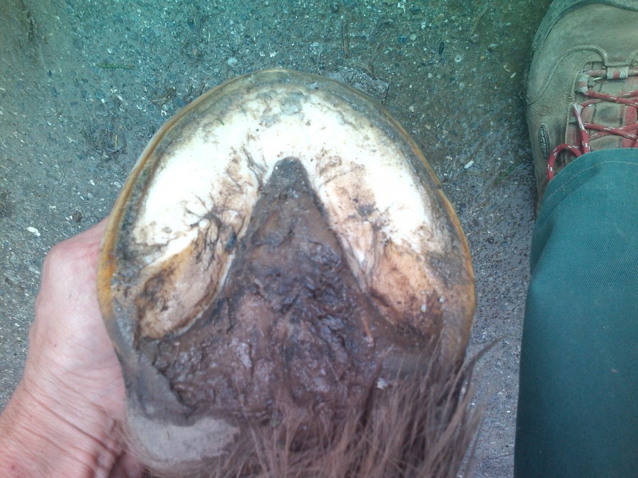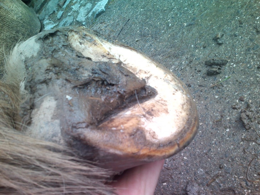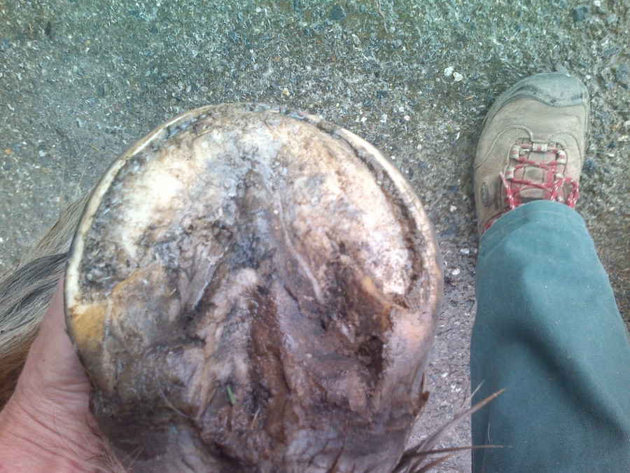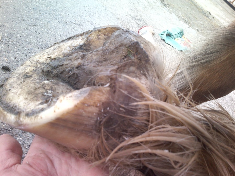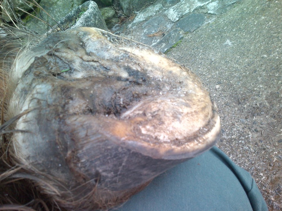 Puis en fait apres avoir nettoyé je trouvais les anterieurs quand même long (ben oui ,vous l'aviez bien dit ..) alors j'ai raccourci (surtout en pince ) pour remettre le point de "break-over" à sa place ;puis j'ai pschitté au vinaigre puis laissé les pieds sur un carton et mis de l'huile de cade mais ça ne semblait pas tenir sur le pieds mouillé