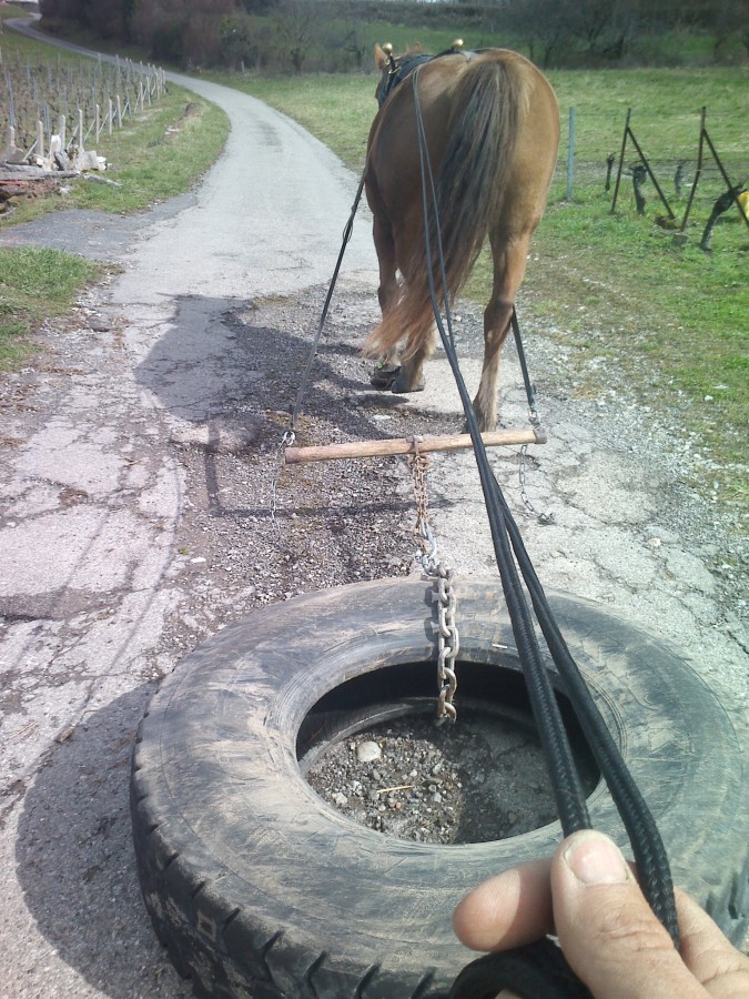 4.2 km avec le pneu de camion en LR (deux fois le tour des vignes avec une pause au milieu)