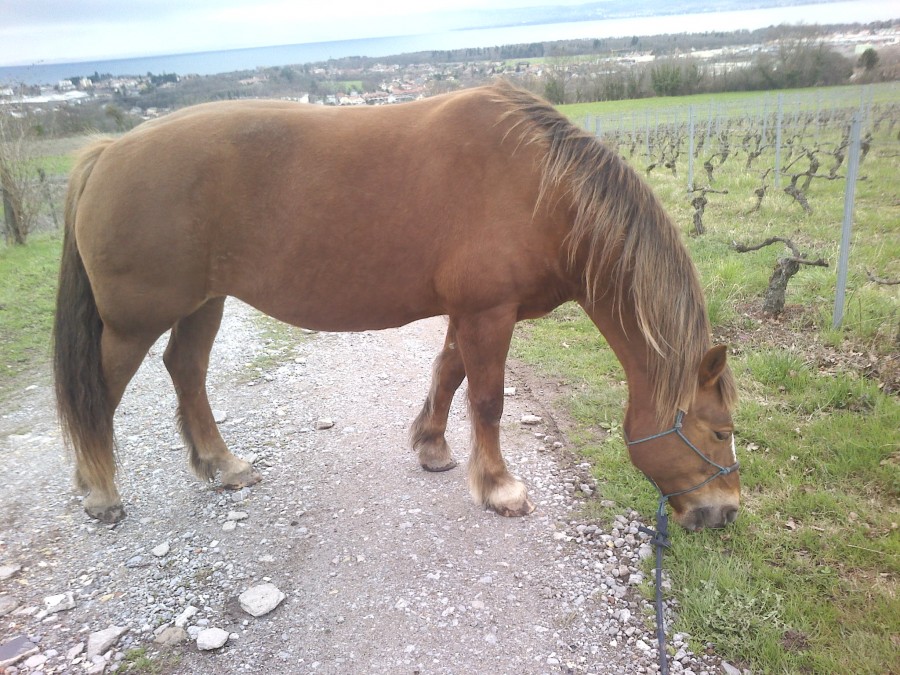 J'avais mis les boots , puis apres on a brouté un peu ...Apparemment ça ne la gêne pas d'etre sur les cailloux pour manger