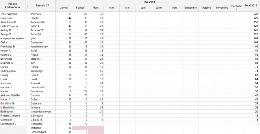 Un bravo spécial à unicorne et flakiss qui ont fait plus de 100km sur le mois de mars! Bravo