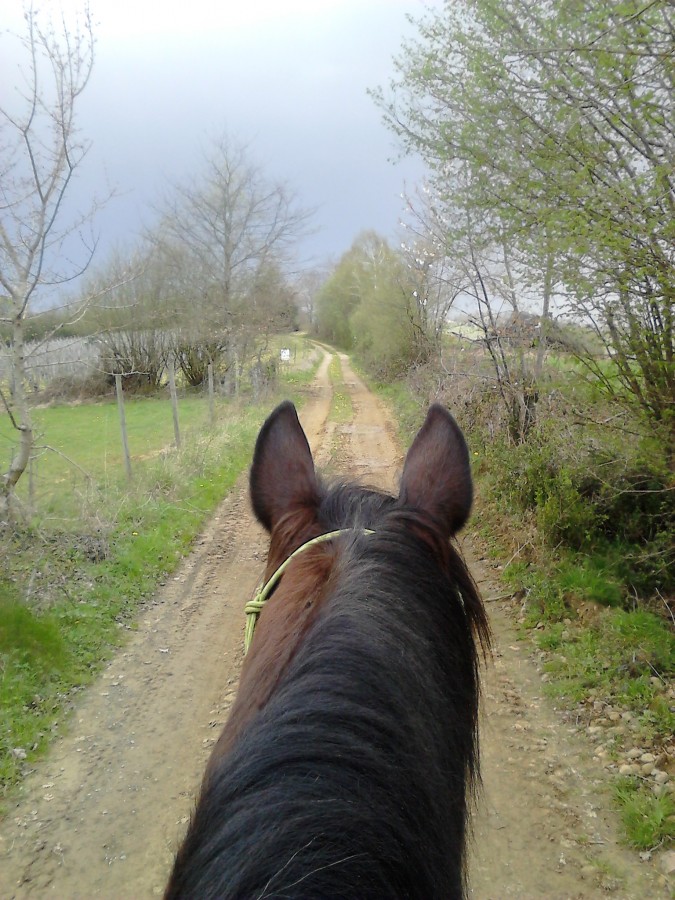 +4,9kms à cru (ça faisait longtemps) ce matin avant l'arrivée de la pluie ! On a fait tranquille au pas avec un tout petit peu de trot. Et en rentrant je l'ai remis direct au pré avec les copains sans le faire remonter a la sellerie il été content du coup!