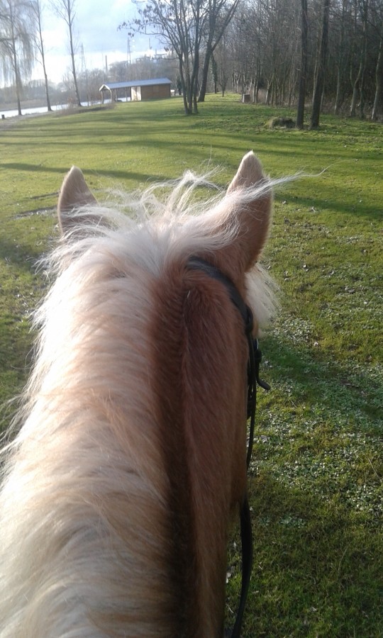 Uniquement pas et trot. Du coup kalie qui a l'habitude qu'on fasse de beaux galops,  chauffé un peu, j'ai donc décidé de l passer en tete ca l'a bien calmée l dondon