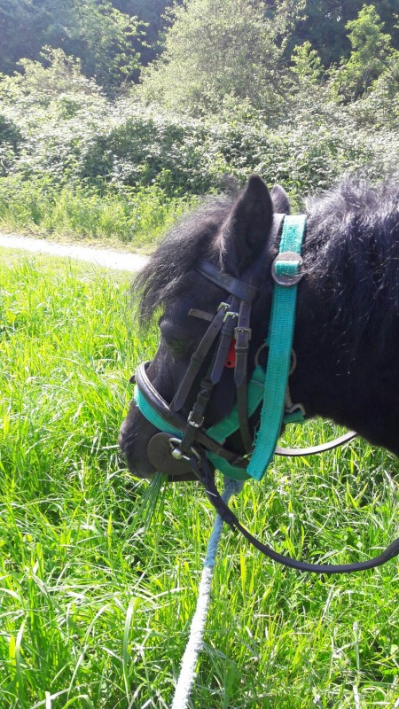 A présent, je monte Salbai qui, je trouve, n'a pas le mental "course". Je pourrais peut-être l'entrainer mais je ne suis pas sûre que ça donnerait grand chose...