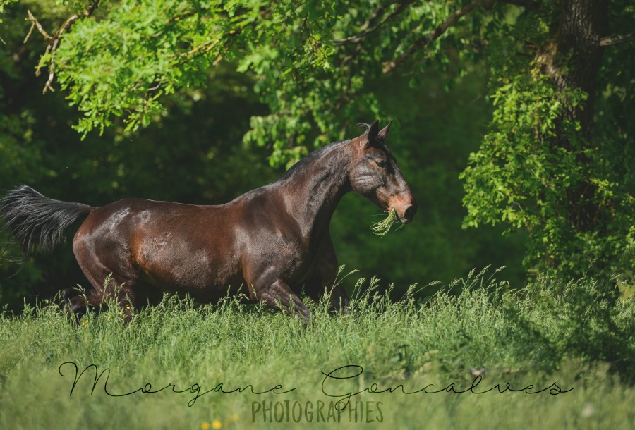 + 8km avant-hier, légère amélioration dans le comportement même si, deux fois, elle serait bien allez casser la tête à l'autre cheval sans vraiment de raison...Du coup madame est allez au pré seule se détendre un coup et elle en était bien contente (photo).