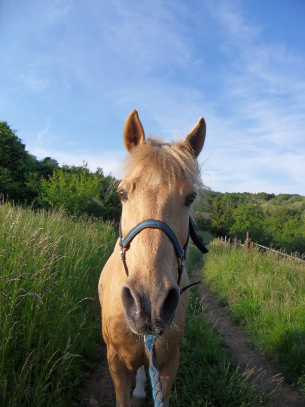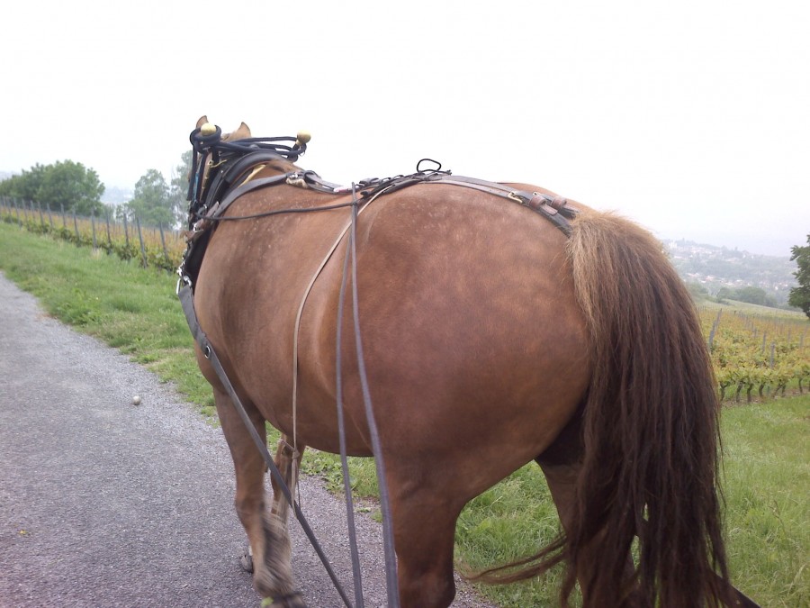 Mia est vraiment cool (mais pas rapide ) J'avais mis les boots qu'aux anterieurs comme on n'allait pas faire beaucoup de chemins à cailloux ;puis la trotteuse n'est ferré qu'aux anterieurs aussi
