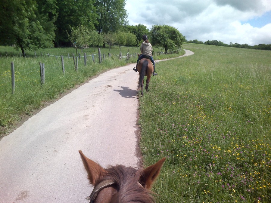 apasel : oui je suis partie avec la propriétaire de sa copine de pré. Je ne sors plus seule suite à quelques mauvaises expériences (chutes). Quand je suis seule, je pars à pied.