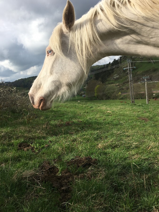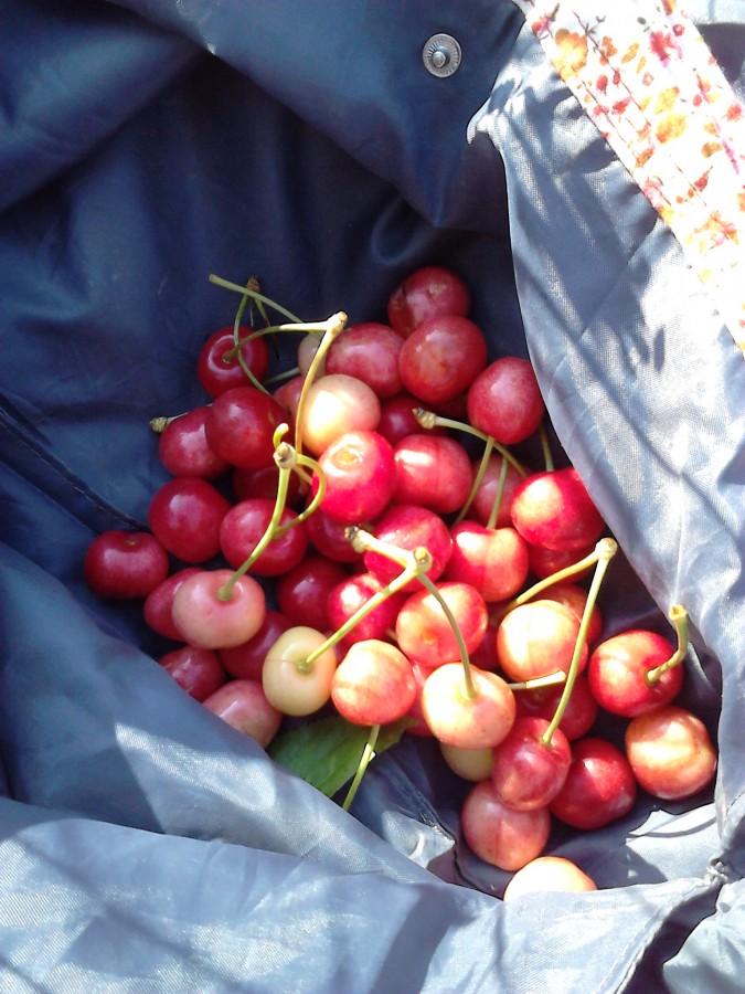 Du coup ce soir ça a été papouilles et ramassage des premières cerises ! Et oui dans le pré ou ils sont actuellement il y a un cerisiers et Glinski m'a bien été utile pour les attraper ! ^^