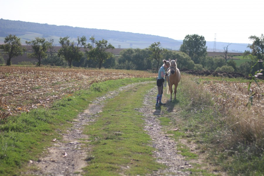 Ça y ai j'ai enfin pu aller en balade avec la jument allemande blessee que in te met au boulot hier +4km dont 500m de trot ! Et aujourdhui +4,50km dont 800m de trot !ça avance mais elle boîte toujours pas donc on continue.. et ma vachette reviens enfin jeudi j'ai trop hâte