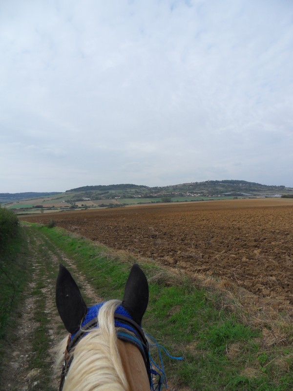 Photo de tout à l'heure : les deux collines en face de nous sont nos deux terrains de jeu habituels. Celle de droite lorsqu'Éros est au pré et celle de gauche le reste de l'année. Cette fois nous étions vraiment à l'opposé.