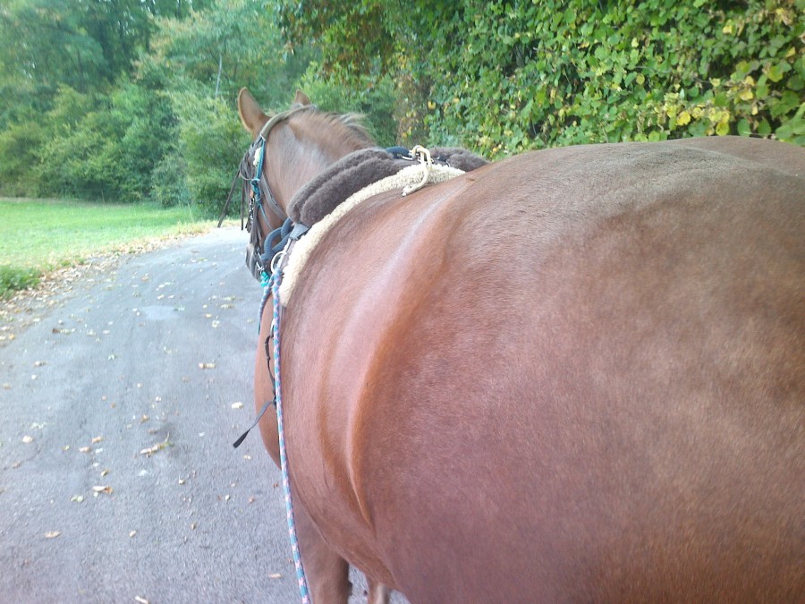8.6 km en sortie "surprise" avec le proprietaire de la trotteuse . tout le monde etait content Les juments ont bien marché en tête à tour de rôle ; Puis on a trotté un peu et puis comme on n'est pas rapide j'ai même galopé qqs foulées derriere la trotteuse (au trot )