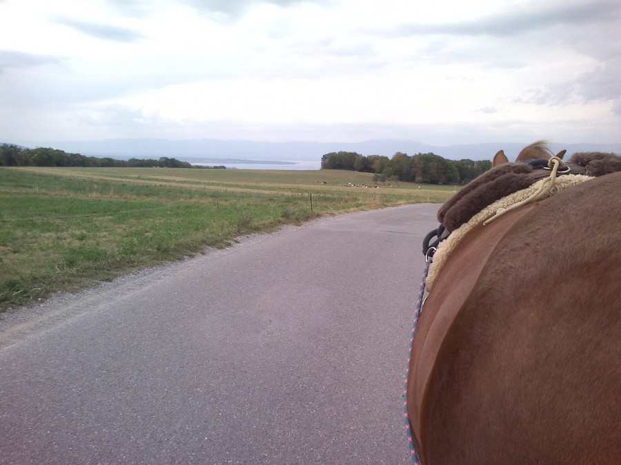 +1.6km en attelage cet aprèm avec des visiteurs. Vulcain pas du tout motivé... la calèche était lourde car complète et il sort moins régulièrement, ça doit lui tirer sur la couenne.