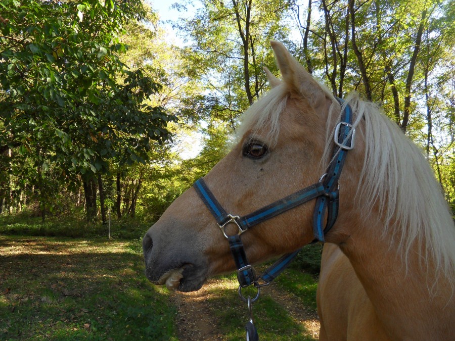 Elle est toujours avec son ânesse comme copine, elles ont 1.5ha de pré/bois à brouter et entretenir... dure vie de jument moi je vous le dis !!