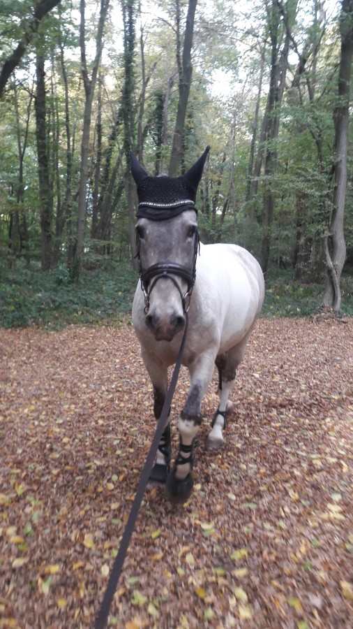 8.3 km monté avec des boots aux anterieurs ; j'avais repris ma selle western ;mais je ne suis pas très confortable dessus (ça me fait mal aux ischions ....ça tombe pile sur le "bord" ,malgré la moumoute que j'ai mis ...) demain je remettrai la barefoot et je testerai des tapis ,mais là avec le poil d'hiver ça les plus de "traces" que quand c'est le poil court d'été . On a quand même trotté et galopé un peu !