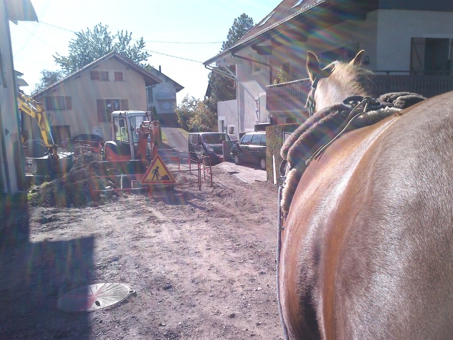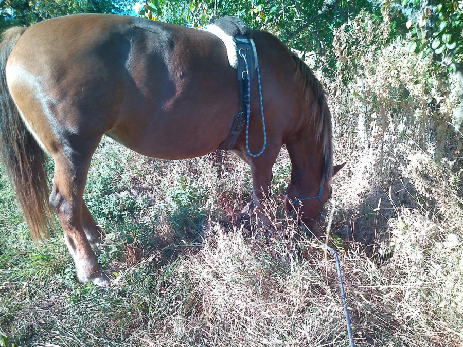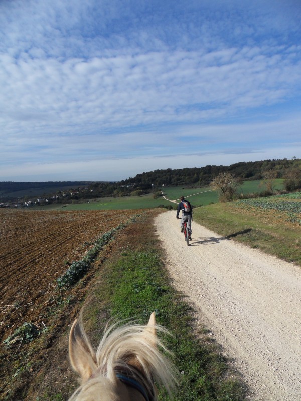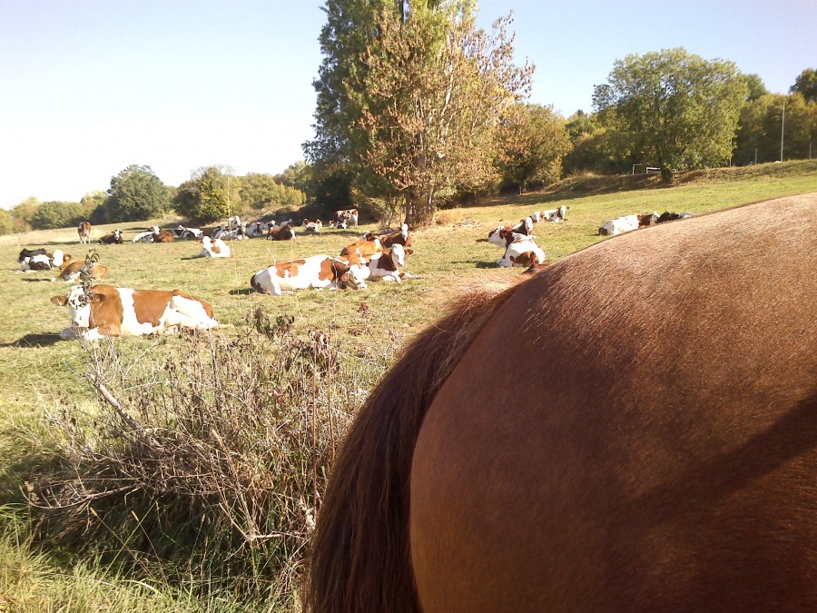 C'etait bien , on a croisé que des gens sympas , des motocross polis qui ont fait attention a nous et des "hordes" de vtt . Puis quand on est arrivées la proprietaire de la trotteuse venait chercher sa jument ;alors la troisieme n'etait pas seule car hier elle a transpiré un peu car elle s'est retrouvée seule (ben oui ça peut- arriver par moment même si on ne sort pas forcément à deux mais les trois y sont confronté par moment ...