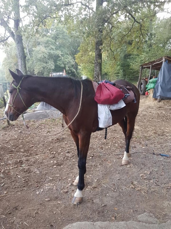 Mais suite à un problème de genou , j ai tenté de monter à cru , en licol ( et sans bombe , pas bien ) sur Salty . Je crois que sinon j y serais encore .