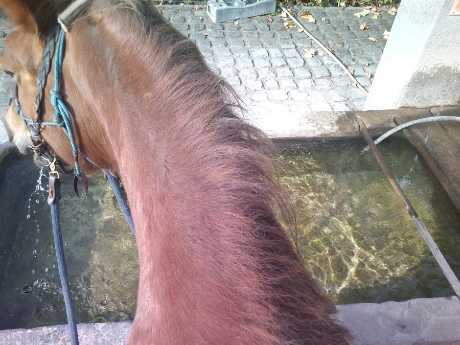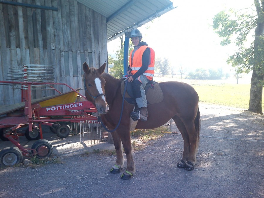 D'ailleurs on a fait un tour monté aujourd'hui 7.8 km , ça lui a de nouveau fait drôle car il y a un moment qu'on n'etait pas sortie monté que toutes les deux . Mais c'était bien à la fin et je lui ai demandé plusieurs fois des bouts de trot pour faire un peu plus de mise en souffle . et je demande un pas plus "tonique" ;mais je crois qu'elle aime bien .