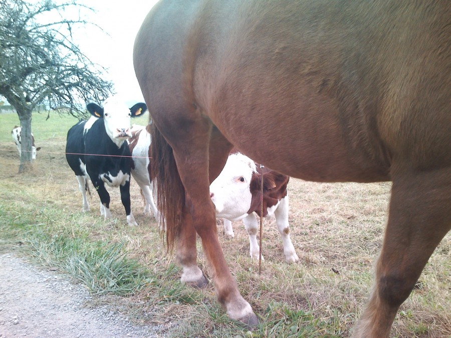 puis une des vaches voulait absolument renifler un posterieur de Mia ;qui est rester de "marbre"