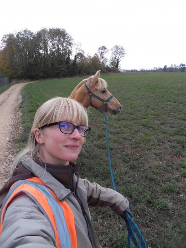 8.7 km monté , c'etait un peu "mouvementé depuis le départ (je pense qu'ils ont chassé ce matin car Mia "regardait partout" et n'a pas arrêté de sursauter (pas dans ses habitudes ) et quand on est rentrées des chasseurs etaient "juste" derriere leur parc
