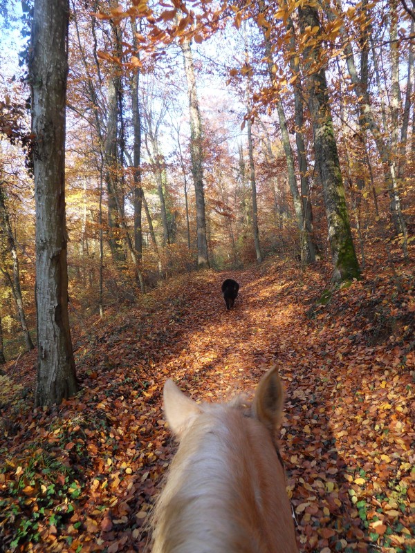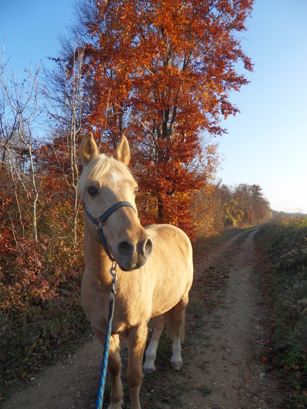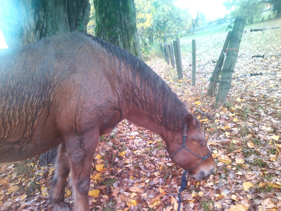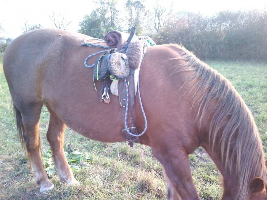 +9km cet après-midi pour profiter du soleil vu le brouillard que nous avons eu toute la semaine. 9km en 2h pour laisser Time aller à son rythme, elle était en mode escargot mais aucunes gènes pour trotter et galoper un petit peu. Il faut dire que tout a bien dégonflé et il n 'y a plus rien, on continue toujours les antibio jusqu'a mardi! Je pense que c'est ça qui la rend "stone". Vieille Kara avait la pêche