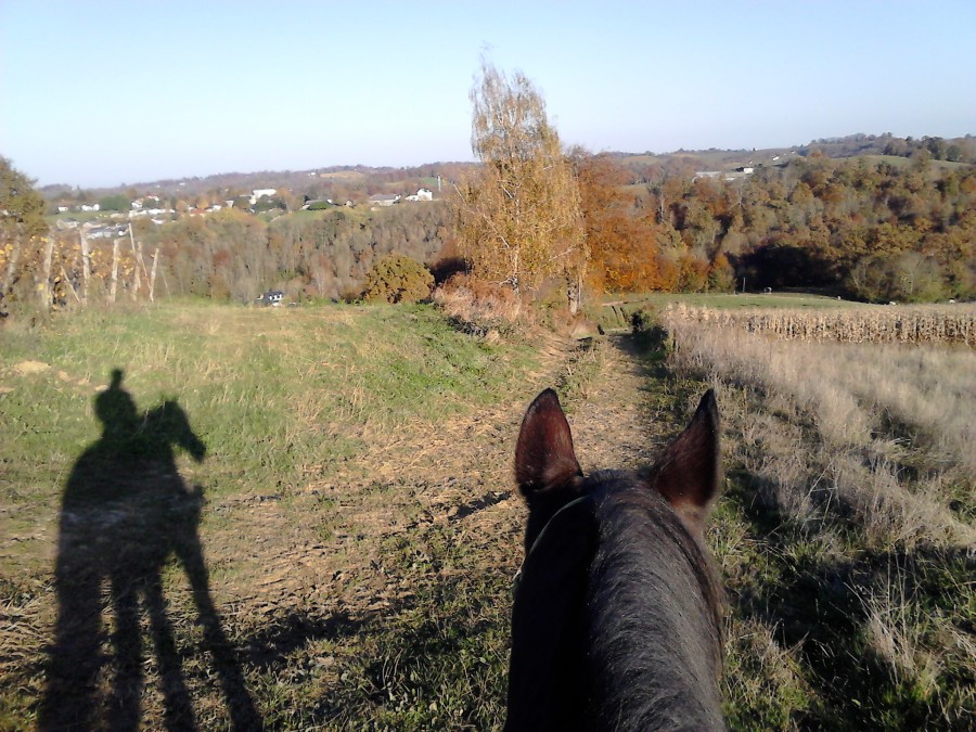 +7,76kms cet aprèm sous un beau soleil et ciel bleu, que ça fait du bien !! On a été faire un tour sur les crêtes Glinski pas très motivé au début et je le trouvais plus raide que d'habitude, je vais peut être faire venir l'ostéo plus tôt que prévu,... Au retour ça allait mieux trot et galop bien, je me demande si ça viens pas plutôt de moi,... je vais travailler sur moi et ma position, car au retour j'ai fait attention a mon attitude et j'ai trouvais que ça allait mieux,... je regarde tout le temps entre ses oreilles pour faire attention ou il met les pieds j'ai toujours peur qu'il se fasse mal ou tombe,... mais il faudrait que je lui fasse plus confiance et que je regarde loin devant,... je vais essayer de travailler ça mais ça va pas être facile pour moi je sens,...