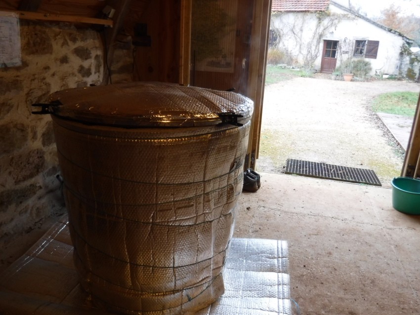 scoudi le premier j'avais fait avec un vieux congélateur. Mais depuis l'an dernier j'utilise un fut de récupération d'eau de pluie , que j'ai isolé et une décolleuse à papier peint pour faire la vapeur