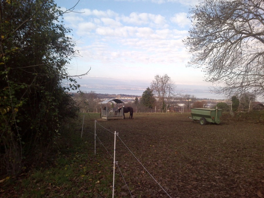 6.6km en LR avec qqe jolis trots ; Quand je suis arrivée Mia m'attendais devant l'entrée (elles n'avaient plus beaucoup de foin
