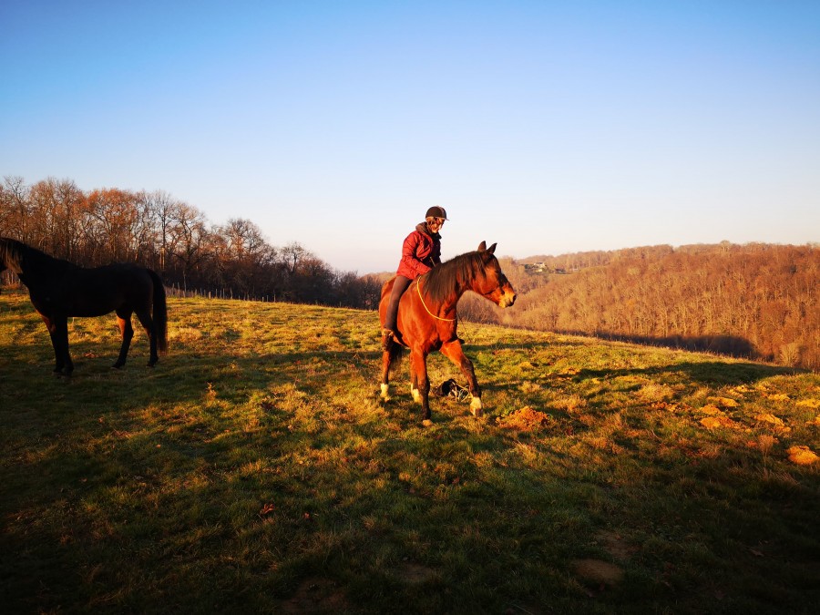 +6,63kms cet aprem avec les copines ! Nous étions 4 c'était bien sympas, on est partie a pied ayant Glinski déferré et une copine est venu avec sa pouliche de 20mois, on est allé sur les crêtes ou on a fait séances photos et petit gouté, du coup on n'as pas fait beaucoup de kms car après la nuit arrivant vite (et le froid) nous sommes rentré a cru et à pied pour ma copine avec sa pouliche. Une chouette journée mais qui ne s'est pas super bien fini, sur le retour la pouliche a voulu taper Glinski sans que personne ne s'y attende sauf que étant à cru dessus c'est ma jambe qu'elle a tapé,... j'aurais un beau bleu demain,...