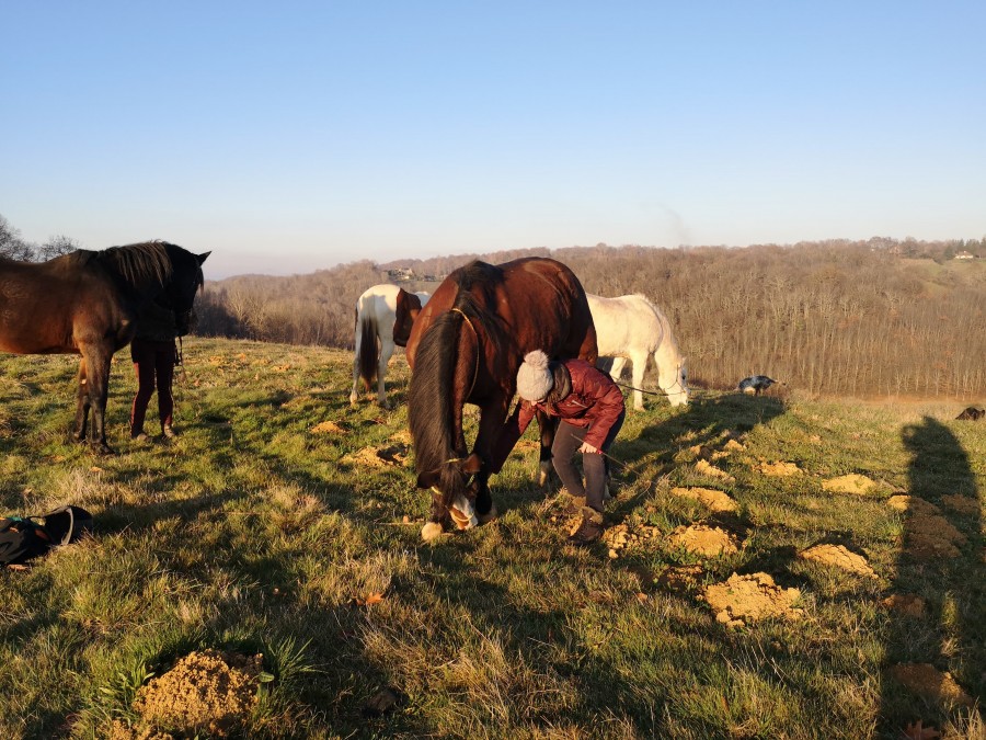 Juste 1 km en longe pour brouter un peu Moi j'avais deja 4h de marche dans les pattes avec la famille qui sont venu pour les fêtes . Il fait froid et gris