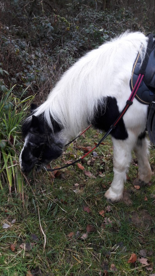 Sinon +3.2 km en balade à pied avec Bonhomme. On devait avoir cours mais prof malade alors je l'ai sorti du pré pour faire le tour du champ derrière l'écurie. Bonhomme ave cun pas très actif, je pense que la tombée de la nuit l'inquiète un peu, mais ultra respectueux et à l'écoute. J'ai fait les 3/4 de la balade avec la longe branchée sur la cordelette.
