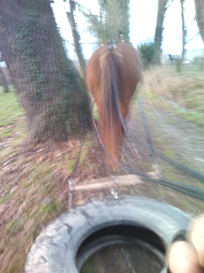 journée neigeuse (chez nous) avec plein de verglas sur la route devant chez nous ; le voisin dans le talus .Du coup j'ai hésité à descendre voir Mia mais comme il y avait une petite éclairci à 15h ....Du coup on a juste fait un petit tour de traction de pneu ,elle etait contente ,on dirait que ça lui plaît !