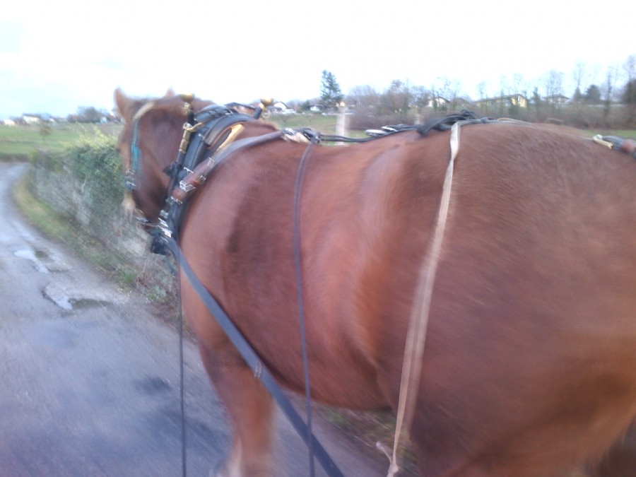 Bonne balade dans l'ensemble sauf que sur le retour sur les crêtes Glinski m'as pris la main et m'as embarqué tête en bas avec quelques coup de cul pour rejoindre Prince son copain de pré que mon père montais et qui été devant et chauffer car on été sur le retour, alors là non pas d'accord il a pris une bonne engueulade et demi-tour tout seul jusqu'à ce qu'il se calme, il a été assez chaud sur le reste du retour, alors quand on a pu: ok il fait froid tu veux galoper alors on va galoper ! On est parti devant d'abord au petit galop (c'est pas lui qui décide!) puis je l'ai lâcher plein galop jusqu'à ce que ça soit moi qui lui dise qu'on s'arrête, ça l'as calmé bien que plus loin avant d'arriver il serait bien remonté au galop pour finir, mais je l'ai calé derrière la jument de Gilbert et on est remonté au pas, heureusement que j'avais les gants j'avais mal aux mains a la fin,... C'est le plus vieux qui avait le plus de jus XD Le froid c'est vivifiant je veux bien mais c'est pas une raison pour en oublier sa cavalière ! Il va falloir que je ressorte un peu avec le filet et le mors je pense, surtout si je balade avec Prince qui est un cheval qui chauffe facilement,...