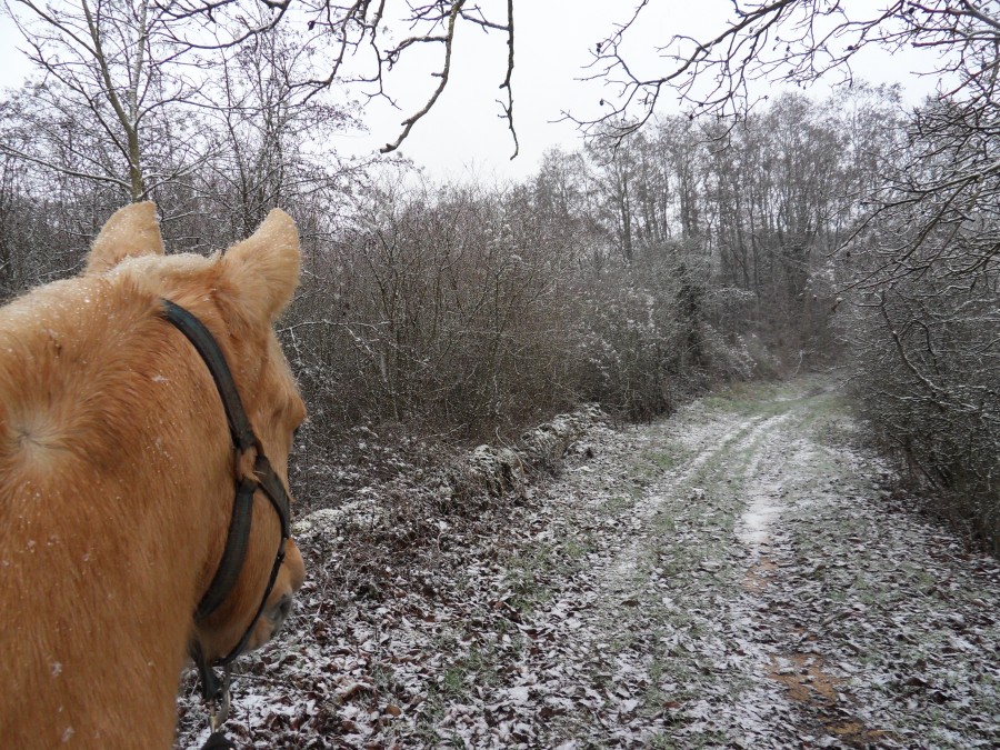 +12km7 cet après-midi avec mes 2 juments, une belle balade les chemins étaient pas mal du tout. Nous avons pu mettre de l'allure. Hier j'ai eu la neige, aujourd'hui c'était des averses de pluie, c'est moins sympa