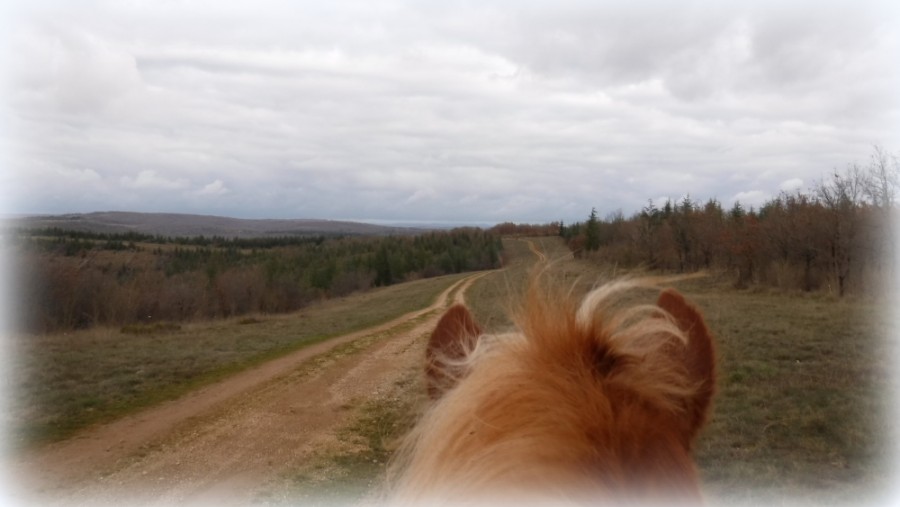 On est repartie avec le licol tranquillou, on a été sur les crêtes on a trotter un peu et Loulou très a l'écoute un simple '"oh" de la voix et il s'arrêtait pas besoin de toucher les rênes c'est agréable quand il est comme ça !