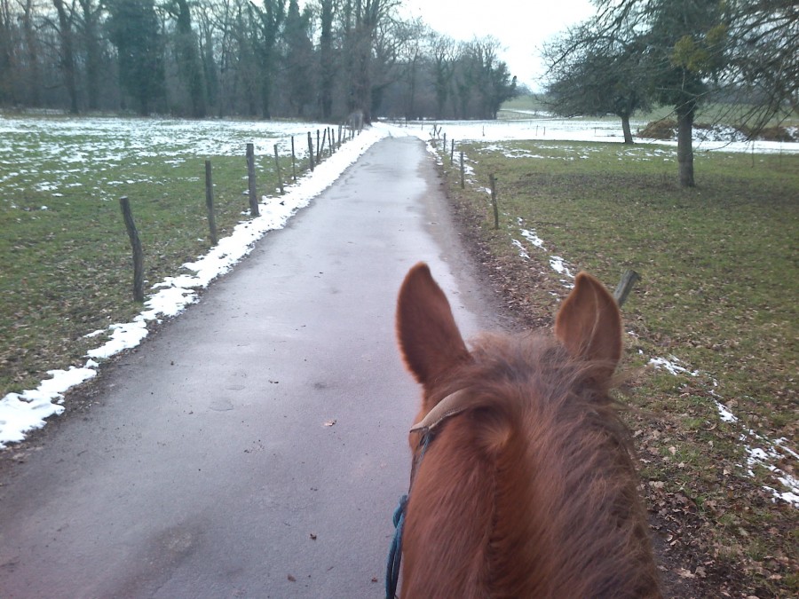 8.5 km monté avec du pas et du trot et qqs foulées de galop . Je voulais profiter du beau temps avant l'arrivée de la tempête et la neige ....Bon c'est devenu "gris" assez vite